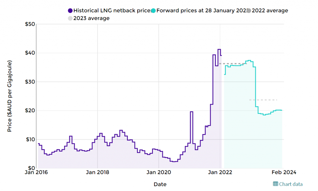 - historical monthly LNG netback prices at the Wallumbilla Gas Supply Hub (Wallumbilla) in Queensland, dating back to January 2016 based on a measure of historical Asian LNG spot prices, and