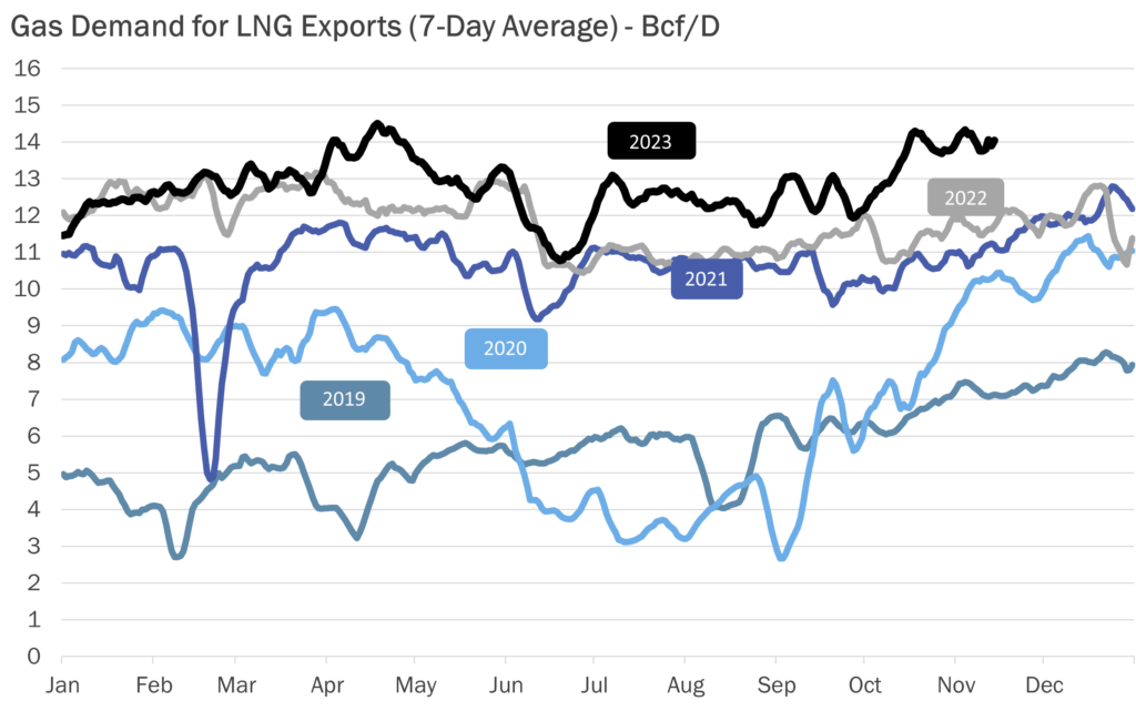 Today’s feedgas demand shows 14.5 Bcf/d.
